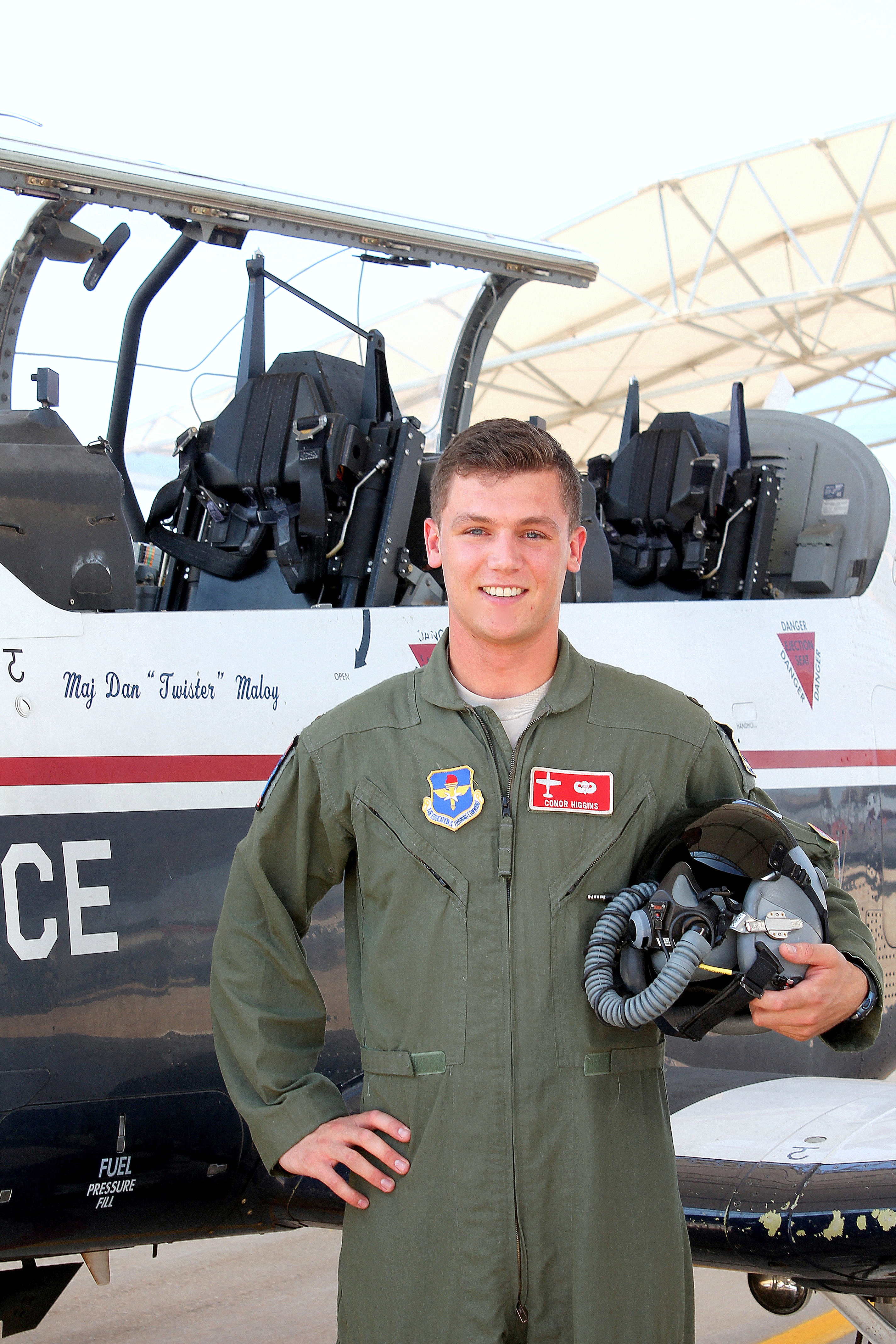 I had the privilege of taking Conor’s class pictures out on the flight line before their track select day. Conor’s class has about 20 people in it; so I took a couple of group pictures and then each person had a couple of solo pictures taken (“hero shots” as they call them). I learned that day that these guys can be super picky particular when it comes to those hero shots. Apparently 95 degree heat on the flight line, not a cloud in site, and full flight suits doesn’t bother them. But, fair enough, as I know I’ve had many times through college where I made people take about 20 of the same picture until I got one I liked. Been there, done that.